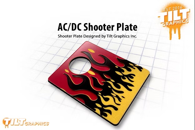 AC/DC laser etched 3D multi layered pinball shooter plate. Best of all it installs in just a few minutes. Each custom shooter plate is crafted produced here in the USA.