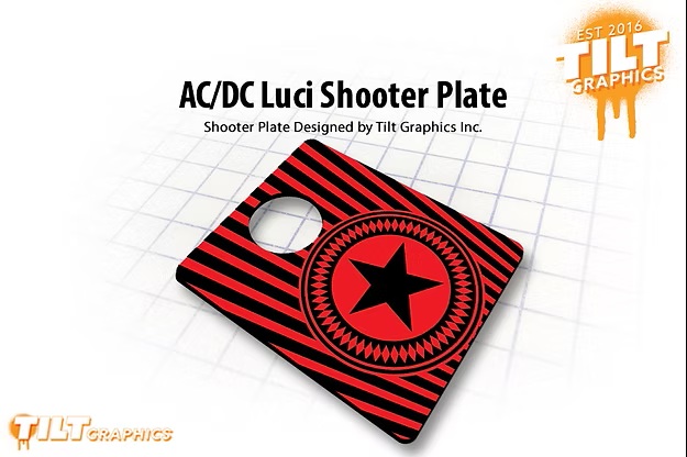 Custom laser etched and cut AC/DC Luci pinball shooter plate. Best of all it installs in just a few minutes. Each custom shooter plate is crafted produced here in the USA.