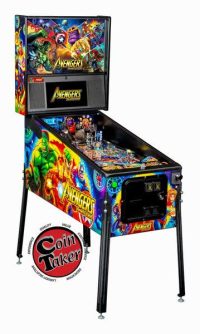 The Pro, Premium, and Limited Edition models all feature an interactive Dr. Strange spinning kinetic sling ring disc with dual direction velocity detection, aiding players on their journey to opening portals and starting Infinity Gem quests. All models feature a gravity defying Avengers Tower magnetic lock ramp with gravitational vari-target and magnet hold, capturing pinballs in midair as players unlock Iron Man Multiball. In addition to distinct hand-drawn artwork, all models feature an Avengers Computer Bingo grid 3-target drop bank, a Thor captive ball, Hulk spinning target, custom intricate wireform ramps, and 3 full size flippers.