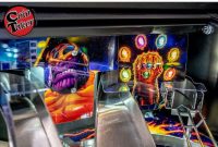 The Premium and Limited Edition models feature an interactive Dr. Strange motorized pop-up disc scoop, transporting pinballs into an underground Portal, a visible subway capable of holding and staging up to 3 balls through custom playfield windows accentuated with dynamic RGB lighting effects. These models also include a custom sculpted Thanos Infinity Gauntlet integrated with atmospheric light-up gems, a Captain Marvel inverse gravity custom wireform ramp, and a Pym Laboratories vertical up-kicker.