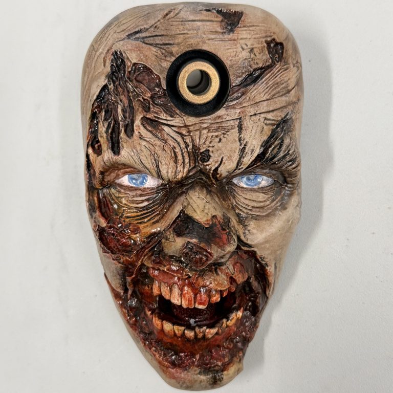 This mod comes with both the bloody face mod and a new shooter housing, Mod is made from resin and hand painted with added blood paint. This mod comes attached to a new shooter housing. To install remove your factory shooter rod and then the factory shooter housing. Next install the mod using the same factory screws you just took out of the shooter housing. Once installed reinstall your shooter rod. The mod covers the machines leg a little. If you need to remove the leg be sure to slide the leg out to the right as not to hit the mod.