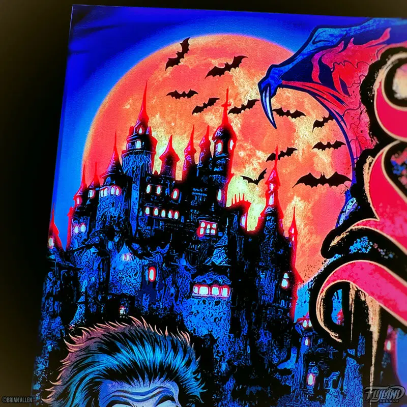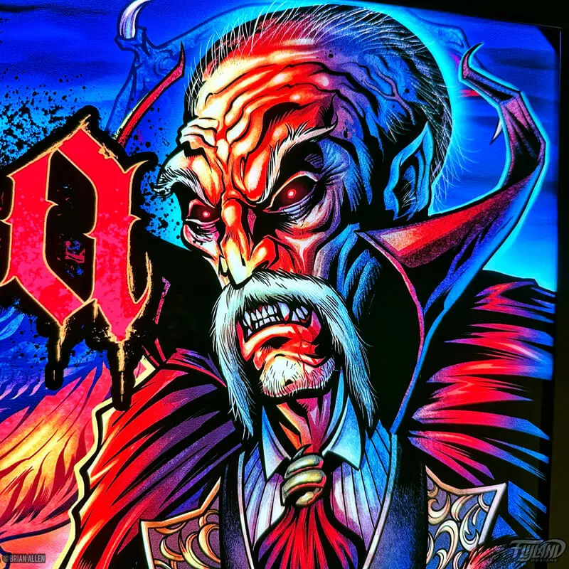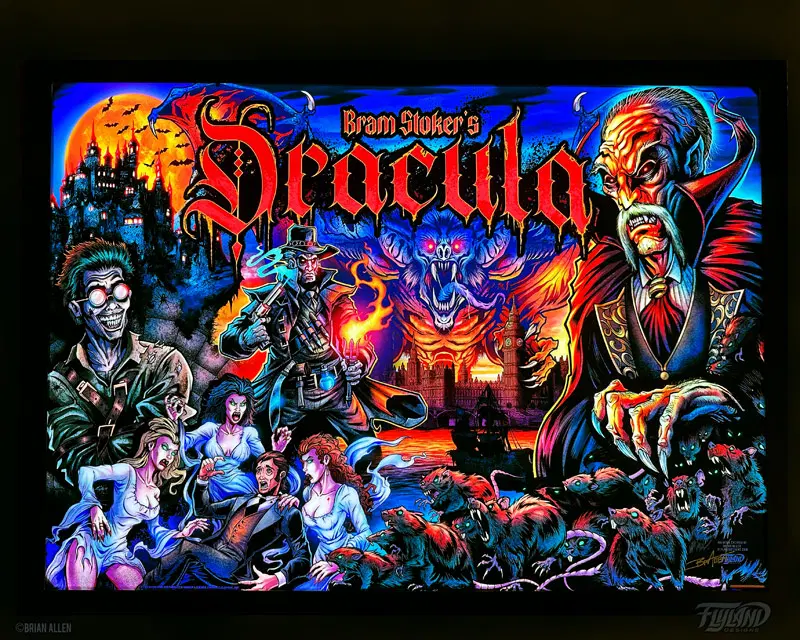 Alternate Translite artwork of the Bram Stoker’s Dracula pinball Backglass created by Brian Allen. Officially licensed from Williams!