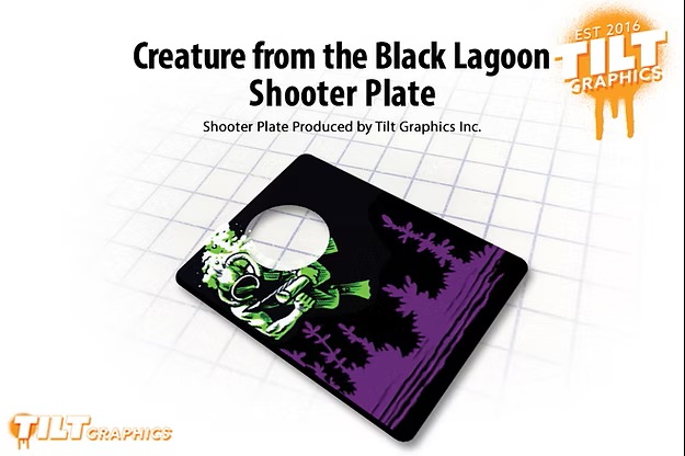 Creature from the Black Lagoon pinball shooter plates. Inspired by art in the game. Best of all it installs in just a few minutes. Each custom shooter plate is crafted produced here in the USA.