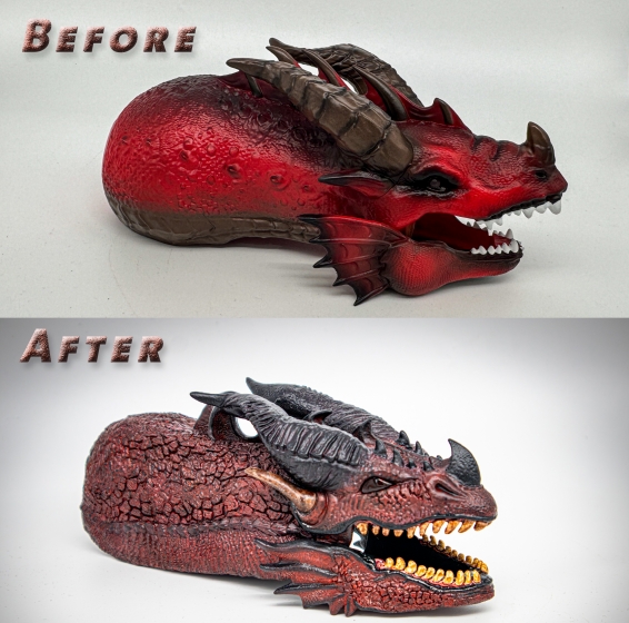 Special Glass Eyes: Both dragon eyes are made from a unique light-reactive glass. While hard to capture in photos or video, they come alive in person – illuminated by internal LEDs for an intense, lifelike gaze.