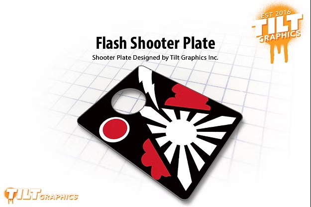 Custom single layer “Flash” UV printed and laser cut and 3D shooter plate. It installs in just a few minutes and best of all it installs in just a few minutes. Each custom shooter plate is crafted produced here in the USA.