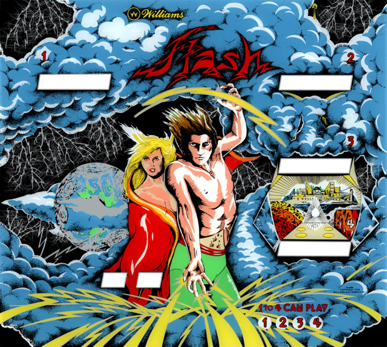 New production screened art backglass for Williams FLASH pinball machine.