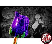 The rose is cast from a clear resin and purple glitter has been added into the casting. The green petals are hand painted and then several coats of clear are put over the entire rose. The shooter rod is made from our “EZ Rods” and comes with a blue spring. This shooter was design for the Guns N Roses CE model but can work on any other pinball however you might have to change your springs.