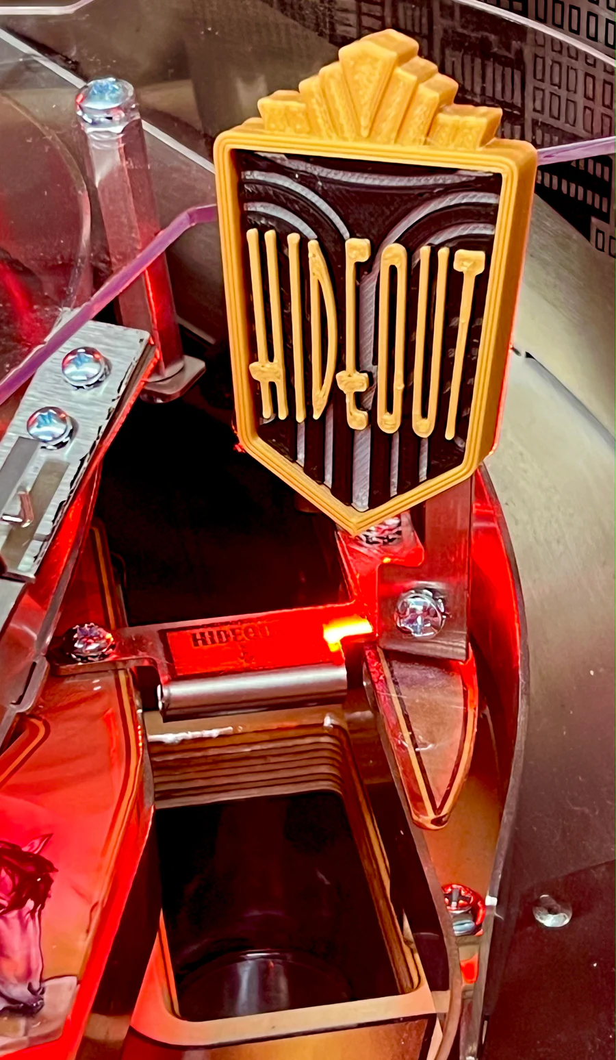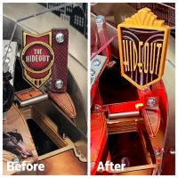 Upgrade the flat factory plastic into an artfully designed three-dimensional scoop sign! The Godfather Pinball Hideout Scoop Sign is a quick and easy way to upgrade your game. Art Deco-inspired design elevates and complements factory art while clarifying gameplay.
