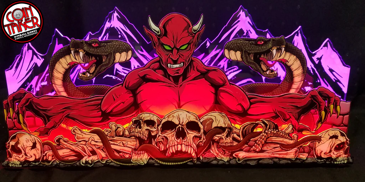 Custom artwork laser etched into acrylic mounted in a welded aluminum low profile frame, our Gorgar topper is the finishing touch to your game. Featuring 3D cutouts and high resolution graphics. Full RGB and red lighting with controller, installation is very easy to do. Topper is 24″ x 9.25″
