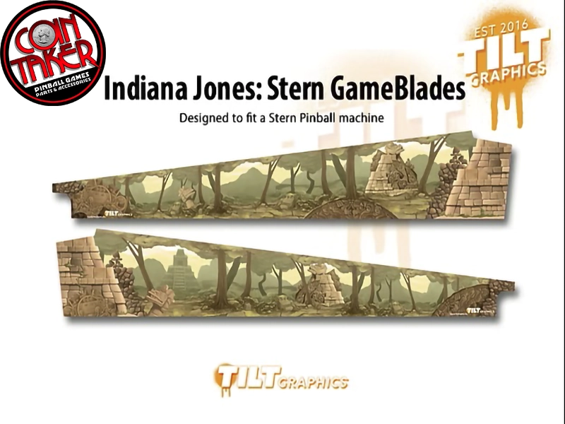 Indiana Jones-Stern inspired custom jungle GameBlades™. These inner side art graphics are the perfect fit for your favorite pinball machine. They install in minutes and are made with only the best air egress vinyl on the market. Air egress vinyl allows you to easily reposition these decals for the perfect fit. Best of all these bad boys are printed and produced here in the USA.