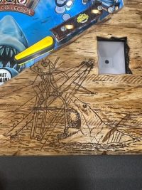 Jaws Mod is hand carved wood with laser engraving. Comes with a one eyed fisherman head inside metal box and replacement triangle window. Also features an adjustable LED strip that adds an eerie glow to the head.
