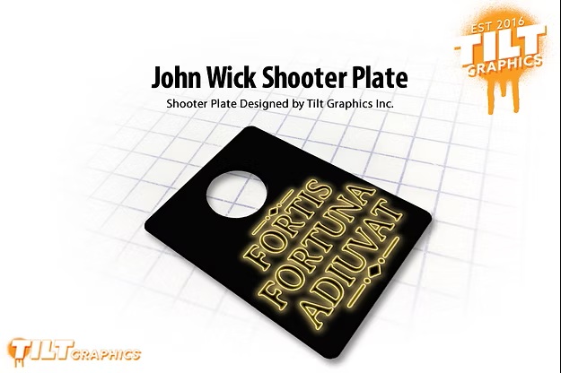 Custom John Wick 4Color UV printed pinball “Fortis Fortuna Adiuvat” shooter plate. Best of all it installs in just a few minutes. Each custom shooter plate is crafted produced here in the USA.