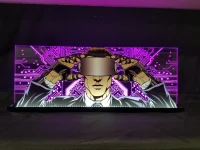 Custom artwork laser etched into acrylic mounted in a welded aluminum low profile frame, our Johnny Mnemonic topper is the finishing touch to your game. Featuring 3D cutouts and high resolution graphics. Full RGB lighting with controller, installation is very easy to do. Topper is 24″ x 9.50″