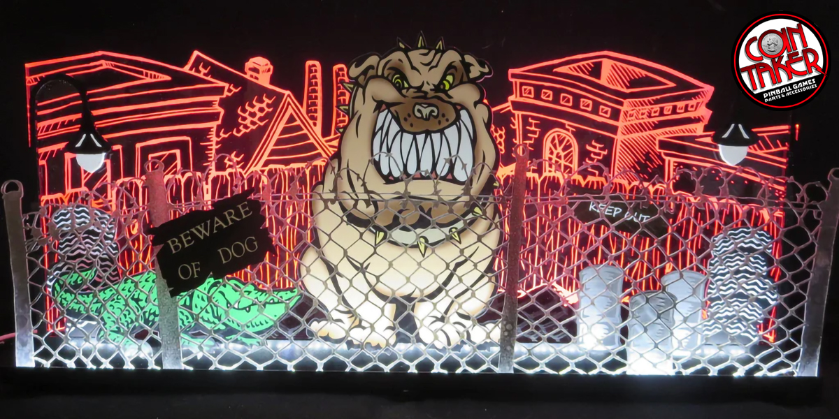 Custom artwork laser etched into acrylic mounted in a welded aluminum low profile frame, our Junk Yard topper is the finishing touch to your game. Featuring 3D cutouts and high resolution graphics. Full RGB lighting with controller, installation is very easy to do. Topper is 24″ x 9″