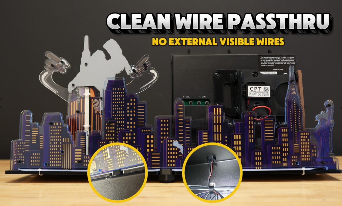 The main attraction is undoubtedly the sculpted billboard structure that features an embedded 10-inch digital display and comes preloaded with 6 animated recreations of iconic King Kong movies posters. Owners will also have the ability to fully customize the display by adding any video footage they want to the included SD card making their topper a truly one-of-a-kind showcase!
