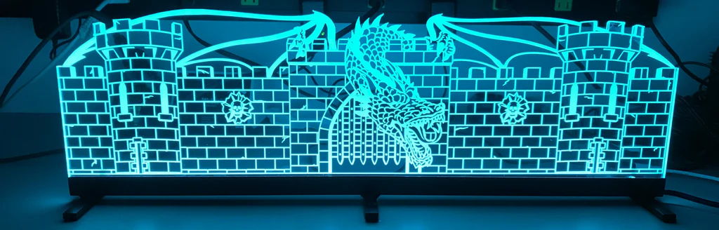 Custom artwork laser etched into acrylic mounted in a welded aluminum low profile frame, our Medieval Madness topper is the finishing touch to your game. Full RGB lighting with controller, installation is very easy to do. Topper is 24″ x 6.75″