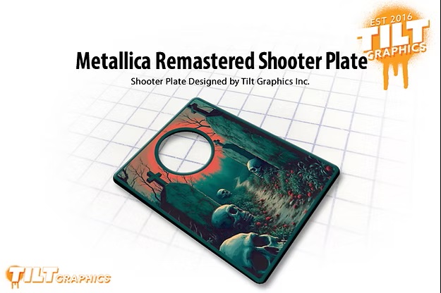 Metallica Remastered inspired pinball shooter plates. Choose wisely and begin each journey with a custom designed shooter plate. Best of all it installs in just a few minutes. Each custom shooter plate is crafted produced here in the USA.