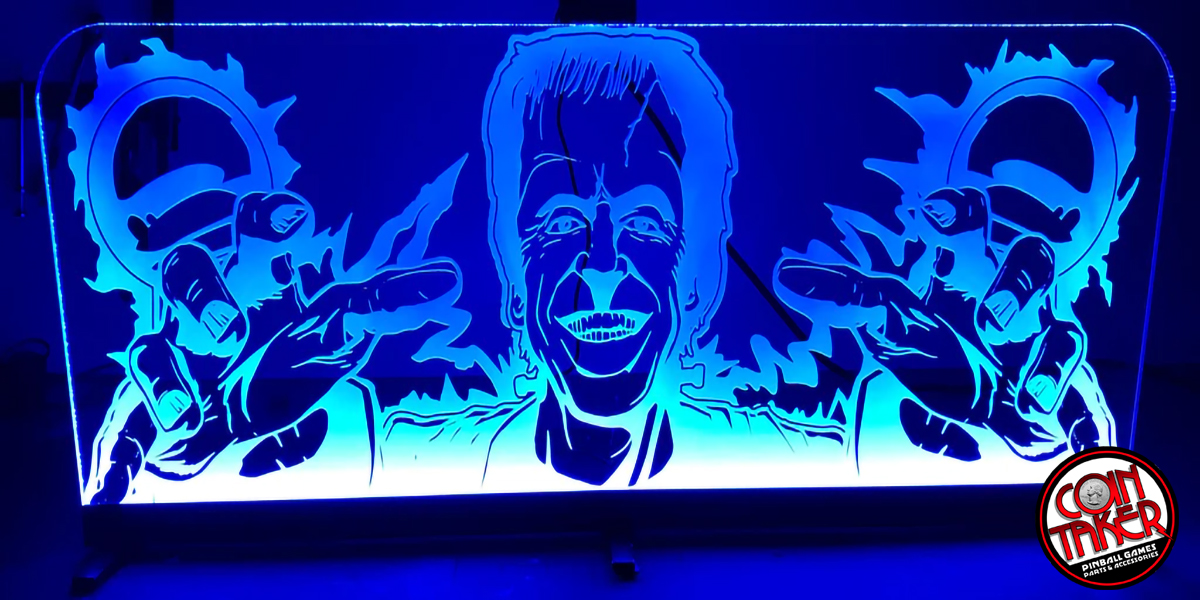 Custom artwork laser etched into acrylic mounted in a welded aluminum low profile frame, our Frankenstein topper is the finishing touch to your game. Full RGB lighting with controller, installation is very easy to do. Topper is 24″ x 9.25″
