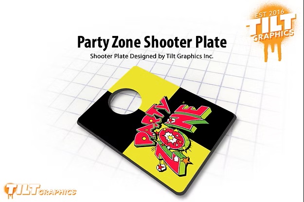 Custom “Party Zone” UV printed and laser cut shooter plate. It installs in just a few minutes and best of all it installs in just a few minutes. Each custom shooter plate is crafted produced here in the USA.
