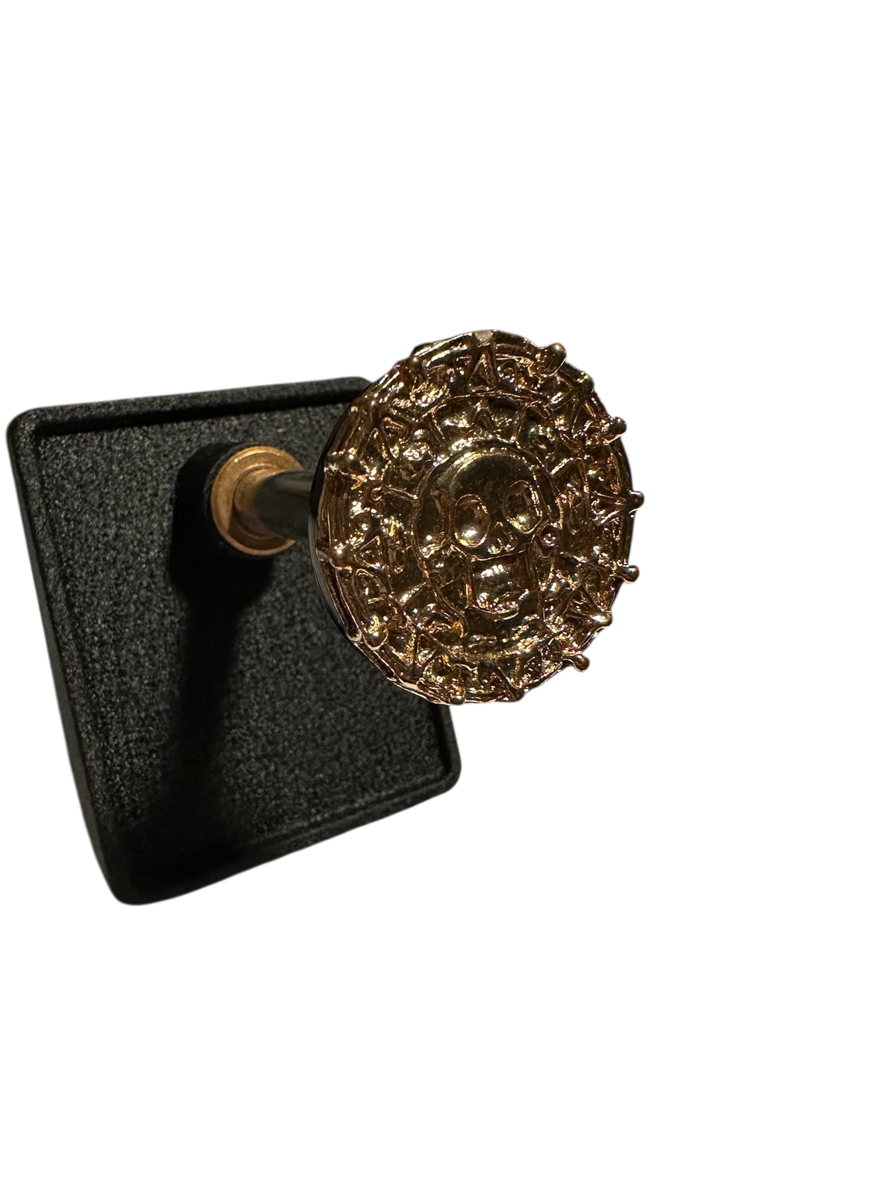 Upgrade your PIRATES OF THE CARIBBEAN or other pirate themed pinball machine to showroom quality with The Aztec Gold Skull Shooter Rod. This expertly hand-crafted-in-the-USA rod is a 24-karat gold-plated coin fused to the polymer handle of a plunge-and-play-ready durable shooter rod.
