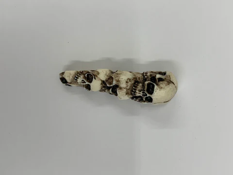 This flipper topper is made to go with the mini playfield. I sculpted the skulls to match with the ones that we designed for in the game. They are cast out of resin and given a brown/black wash like the originals. They attach to the top of the flippers via VHB tape. We recommend that you clean the tops of your flippers with rubbing alcohol before install.