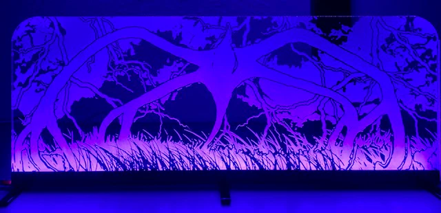 Custom artwork laser etched into acrylic mounted in a welded aluminum low profile frame, our Stranger Things topper is the finishing touch to your game. Full RGB lighting with controller, installation is very easy to do. Topper is 24″ x 9.5″