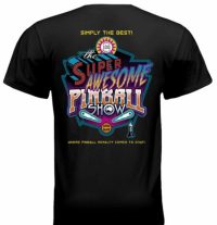 High Quality Haines 100% cotton tee shirt with beautiful artwork from award winning pinball artist Christopher Franchi. Amazing 10 color artwork on the back of the shirt with the Super Awesome Pinball Show logo.
