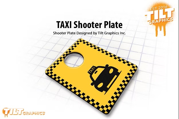 Single laser cut and UV printed “TAXI-Icon” shooter plate. It installs in just a few minutes and best of all it installs in just a few minutes. Each custom shooter plate is crafted produced here in the USA.