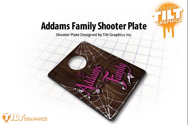 Show the world that youre part of the family with this custom designed Addams Family shooter plate. Ths specific shooter plate is two layers of laser etched and cut high density plastics. guaranteed to last the life of your pin and best of all it installs in just a few minutes. Each custom shooter plate is crafted produced here in the USA.