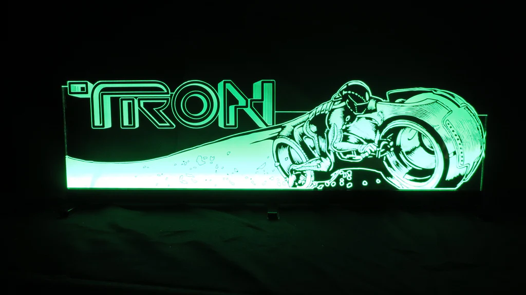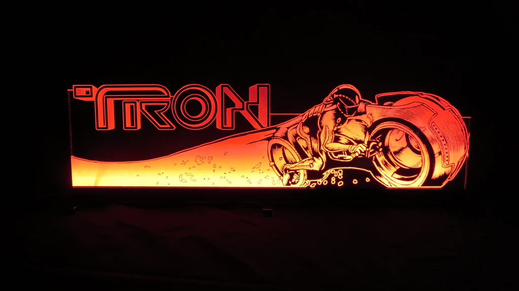 Custom artwork laser etched into acrylic mounted in a welded aluminum low profile frame, our Tron topper is the finishing touch to your game. Full RGB lighting with controller, installation is very easy to do. Topper is 24″ x 6.75″