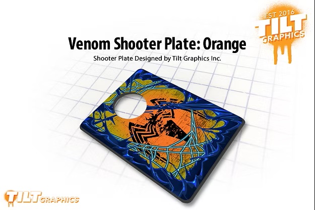 Custom shooter plate for Venom pinball machine. This shooter plate comes in three versions and installs in just a few minutes. Each custom shooter plate is crafted produced here in the USA.